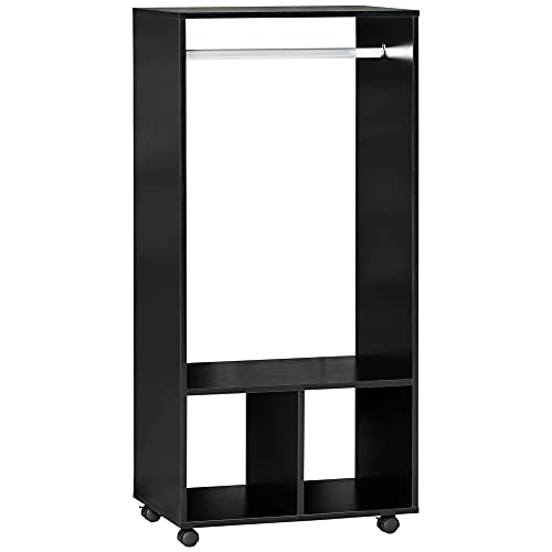 HOMCOM Open Wardrobe for Bedroom, Small Wardrobe on Wheels with Clothes Rail, Storage Shelves, Mobile Garment Rack for Clothes Storage, Cloakroom, Hallway, Black
