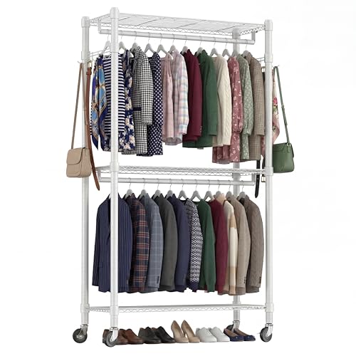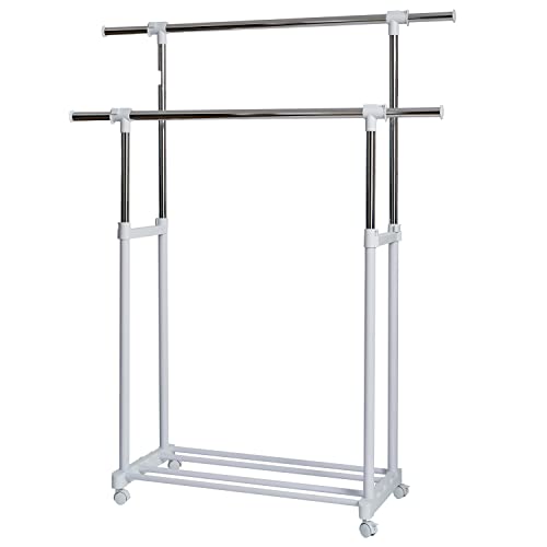 Youyijia Double Rail Clothes Rail, Portable Clothes Rack on Wheels, Extendable Hanging Rails for Clothes,Display Rack for Bedroom laundry rooms