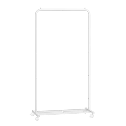 SONGMICS Clothes Rack, Clothes Rail on Wheels, Metal Clothing rail for Bedroom, 74 cm Long Hanging Rail, with Storage Shelf, 2 Lockable Wheels, 35 kg Load Capacity, White HSR130W01