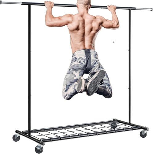 REIBII Clothes Rail - 285KG Strong Double Heavy Duty Clothes Rack, Extendable Clothing Rail on Wheels, Extendable Sturdy Clothes Rail with Shelves for Small Bedroom, Laundry, Easy to Assemble