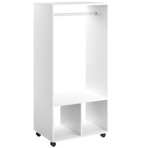 HOMCOM Open Wardrobe for Bedroom, Small Wardrobe on Wheels with Clothes Rail, Storage Shelves, Mobile Garment Rack for Clothes Storage, Cloakroom, Hallway, White