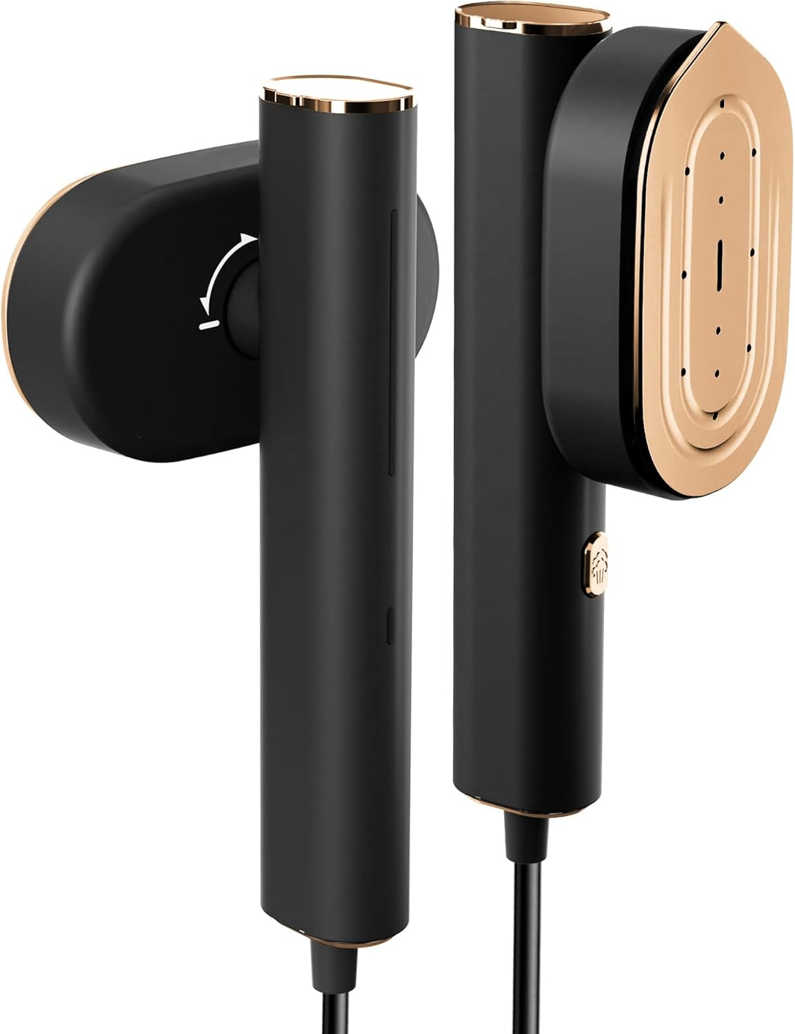 PKBD Travel Iron Handheld Clothes Steamer,Travel Steamer for Clothes Wrinkle Remover-Steamer Iron with LED Screen 6 Speed Steam 10S Rapid Heating-1200W Portable Clothes Steamer for Home & Travel,Gold