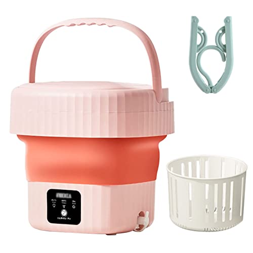 Mini Foldable Washer and Spin Dryer Small Foldable Bucket Washer for Camping, Rv, Travel, Small Spaces, Socks, Baby Clothes, Towels (Color : Pink)