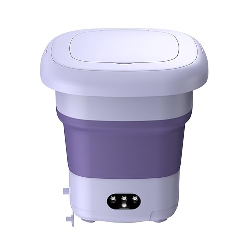 Portable Washer,6L Foldable Laundry Tub, Spin Dryer for Clothes, Power Washer With Drain Basket,Suitable for Home Travel Dormitory, Collapsible Small Washing Machine, Socks & Underwear (Purple)