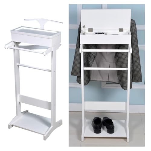 zklaseot Men and Women Valet Stand, Contour Hanger, Modern Multifunctional Wooden Clothes Stand, Clothing Organizer For Bedroom, Living Room, Office, Hotel(White)
