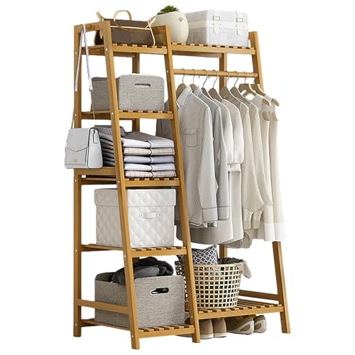 Bamboo Garment Rack with Shelves, Open Wardrobe Closet & Rail - Stylish Clothing Stand for Bedroom, Hallway & Entryway