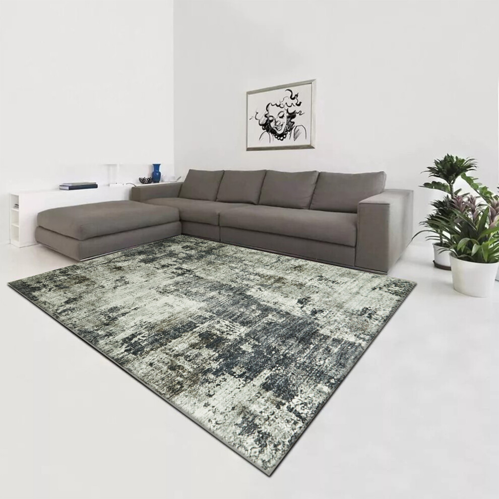 (X-Large 200x290 cm (6'7"x9'6")) Marbled Rug for Living Room, Bedroom, Lounge Modern Abstract Quality Aurora Cloud Grey Rug