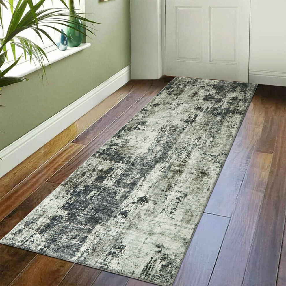 (Runner 66x240 cm (2'1"x7'10")) Marbled Rug for Living Room, Bedroom, Lounge Modern Abstract Quality Aurora Cloud Grey Rug