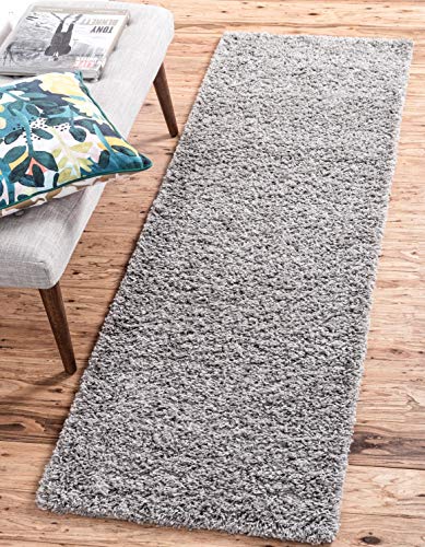 Unique Loom Solo Solid Shag Collection Area Rug- Modern Plush Rug Lush & Soft (2' 6 x 10' 0 Runner, Cloud Gray)