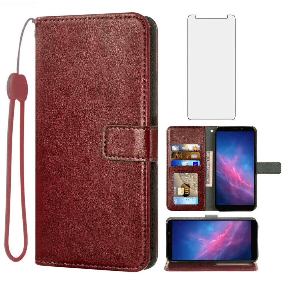 Wallet Case Tempered Glass Screen Protector Leather Flip Cover Card Holder Stand Brown For Cloud Mobile Stratus C7