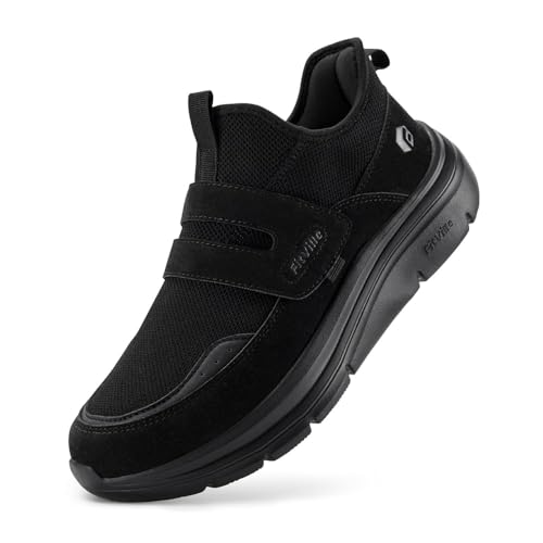 FitVille Women's Extra Wide Width Slip-on Trainers with Adjustable Straps, Easy on & Off Comfortable Walking Shoes for Swollen Feet, Cloud Wanderer V5 X-Wide 8 UK Jet Black
