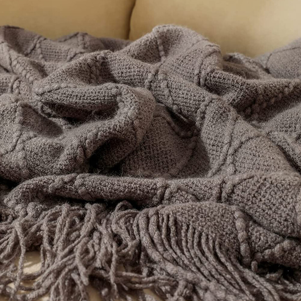 Elegant Color Boho Crochet Blanket, Chic Touch for Your Home Decor, Soft Knitted Wool with Farmhouse Lightweight Blanket Charm, Perfect for All Season