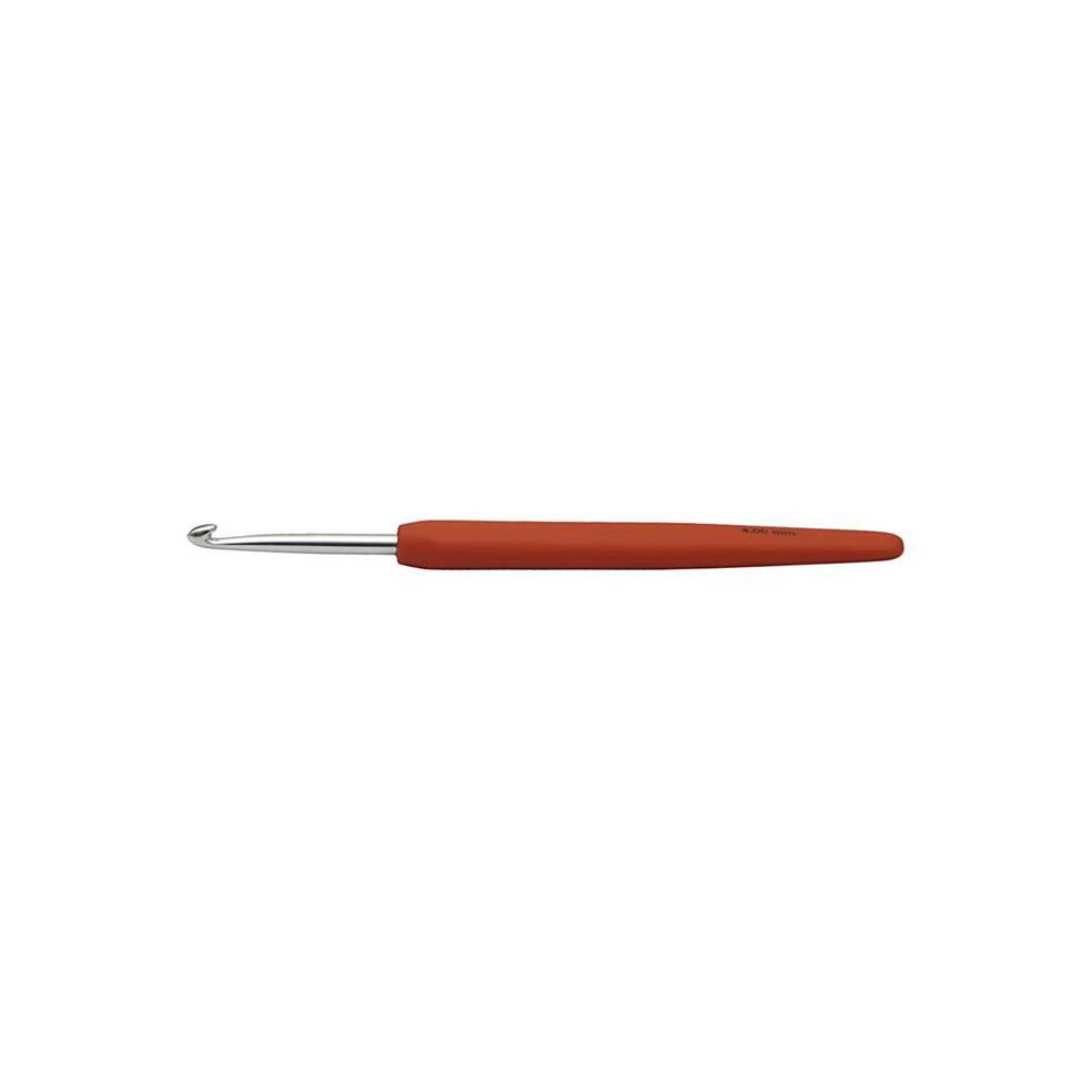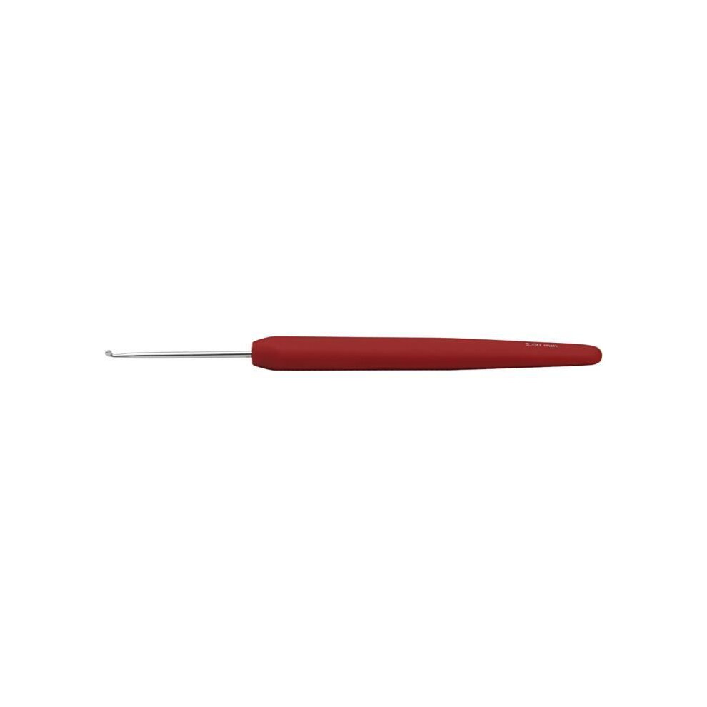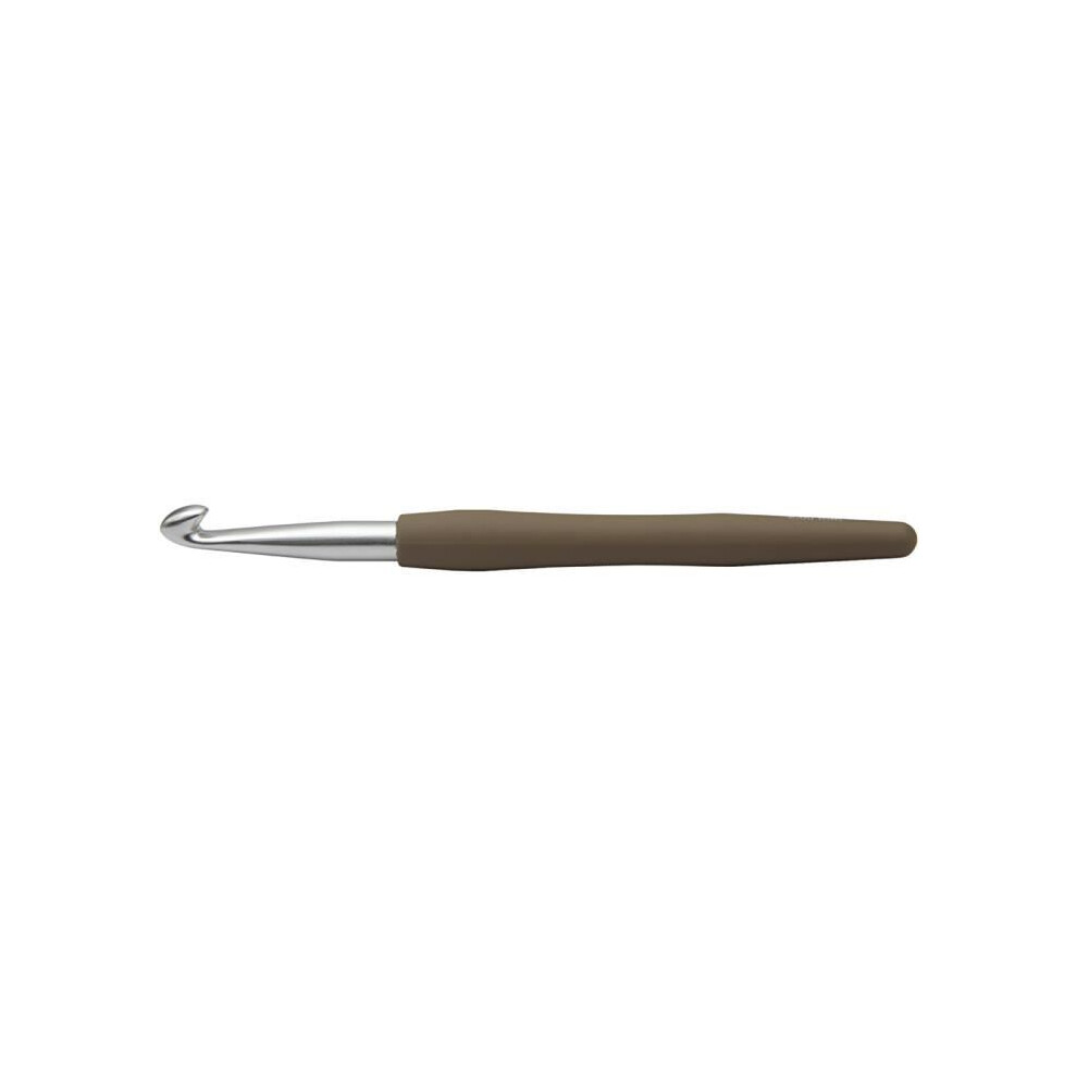 Ergonomic crochet hook with aluminum hook and plastic handle with a soft touch. Ref 42388