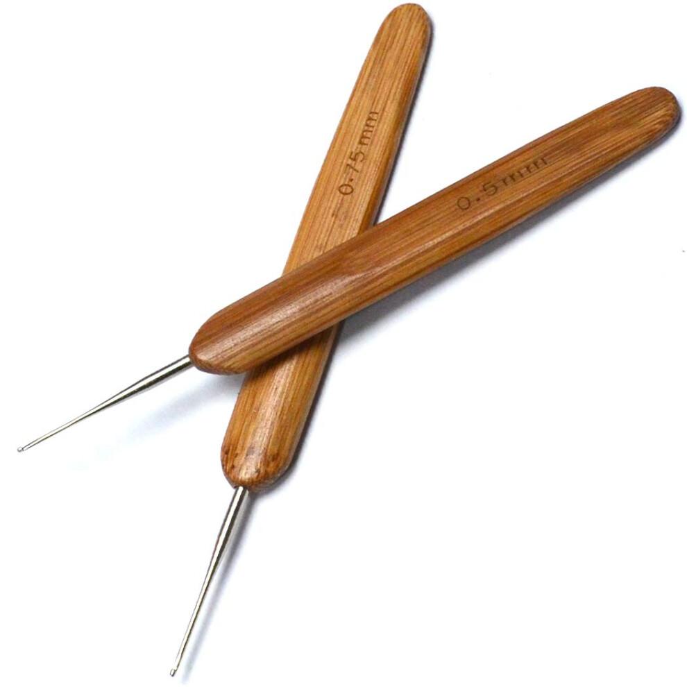 BLUPLE Bamboo Dreadlock Crochet Hook Dreadlocks Crochet Needles Dreads Braiding Hair Crochet Hook Soft Touch Steel for Dreadlocks Hair Extension (2Pcs