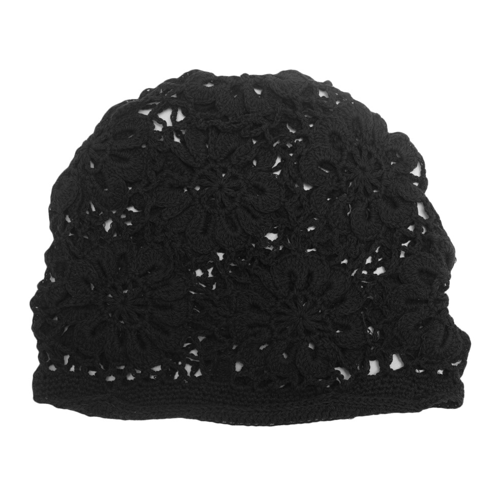 Women's Hollow Lace Beanie Cap, Soft to the Touch Cotton Crochet Skull Hat with Breathable Design, Foldable and Packable Lightweight Beret Featuring