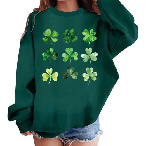 St Patrick Day Girls' Hoodless Sweatshirt St Patricks Day Outfits Kids Green Jumper Kids Long Sleeve Crewneck Sweatshirt Soft Clover Print Pullover Casual Tops for Saint PatricksDay