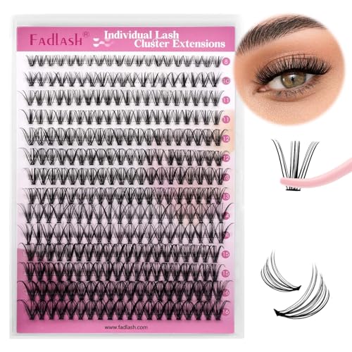 FADLASH Individual Cluster Lashes Extensions 40D 0.07 D Curl 16mm Extensions 200Pcs Individual Cluster Lashes DIY Eyelash Extensions at Home