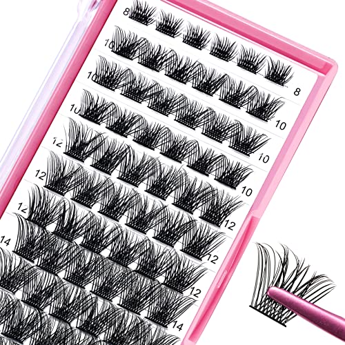Cluster Lashes 72 Pcs Lash Clusters DIY Eyelash Extension Individual Cluster Eyelashes Tender Style Self-Application Fluffy Super Thin Band Reusable Soft & Comfortable(Tender-D-8-16mix)