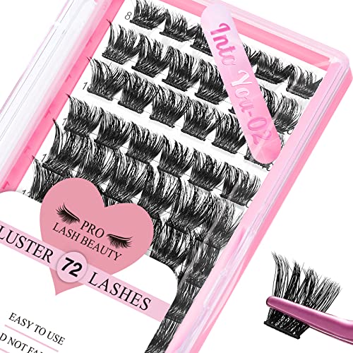 Cluster Lashes, 72 Pcs Individual Lashes, Lash Clusters DIY Eyelash Extension, Super Thin Band Reusable Soft & Comfortable (Into You-01-D-12mm)