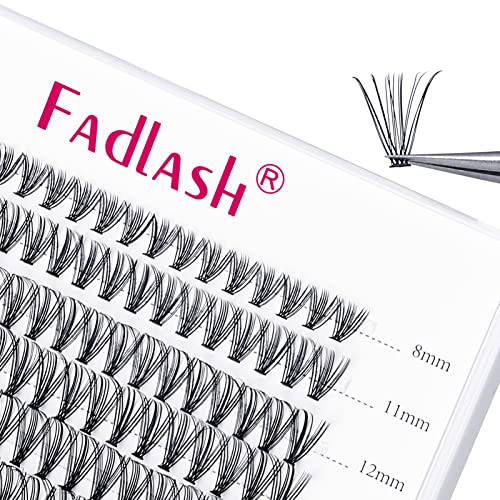 FADLASH Individual Cluster Lashes 20d 0.07mm Curl 12mm Russian Cluster Lashes Fluffy Natural Wispy Extensions