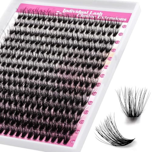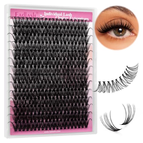 Fadlash Lash Clusters 240pcs 3D Effect 0.07 D Curl 12-18MM 40D DIY Individual Eyelash Extenisons Fluffy Cluster Eyelashes False Lashes DIY at Home