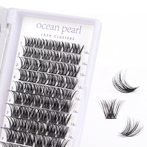 Ocean Pearl Individual Eyelashes 120 Cluster Lashes DIY Eyelash Extension Thin Band Wide Stem Lash Clusters with Tweezers and Super Bond and Seal Lash Extensions Kit Mix 10-16mm Length C/D Curl-OP01