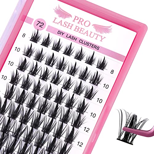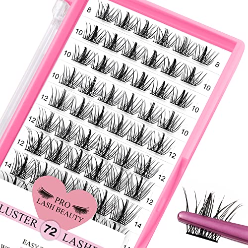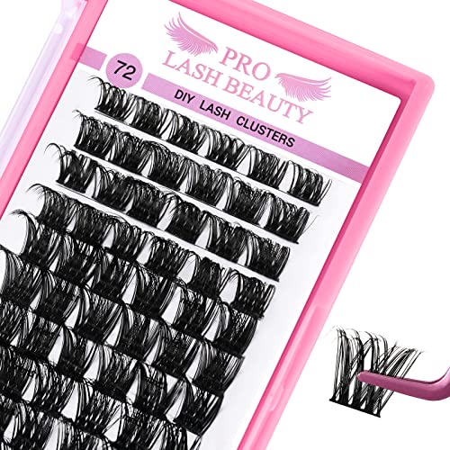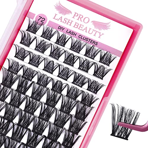 Lash Clusters, 72 Pcs Individual Lashes, Cluster DIY Lash Extension, Volume Eyelashes Look, Super Thin Band and Comfortable (D-12mm)