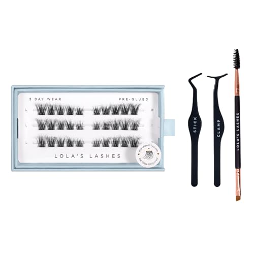 Lola's Lashes Pre-Glued Cluster Lashes | Natural Pre-Mapped Lashes Set | Press-On Lashes | Easy Application | Stick & Clamp Tools Included | 5 Days Wear & Waterproof |10-14mm