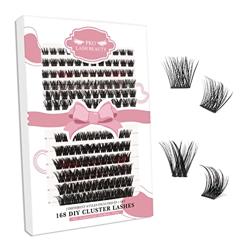 168 Pcs Lash Clusters 2 Styles Mixed Cluster Lashes DIY Eyelash Extensions Eyelash Cluster Extension DIY Individual Lashes Super Thin Band Soft and Easy to Wear (First Glance+Adore,D-Mix)