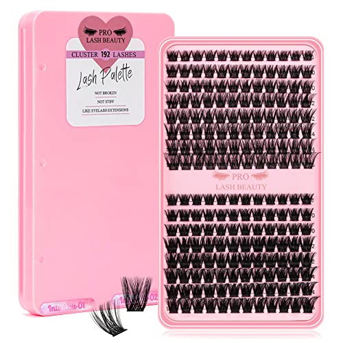 192 Pcs Lash Clusters 2 Styles Mixed Cluster Lashes DIY Eyelash Extensions Eyelash Cluster Extension DIY Individual Lashes Super Thin Band Soft and Easy to Wear (Into You-01+Into You-02,D-Mix)