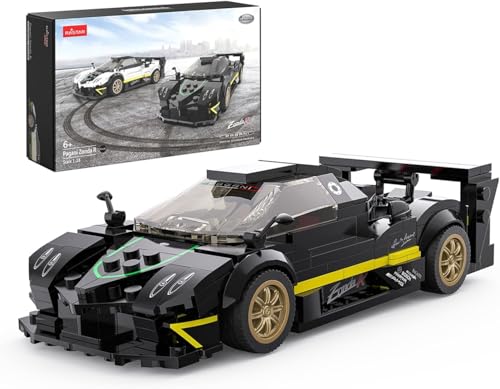 CMJ RC Cars Officially Licensed 1:28 Scale Pagani Zonda R Brick Model Building Kit – 387 Piece Pagani Zonda R Vehicle Collectible Construction Blocks Set Gift for Kids Adults (Black)