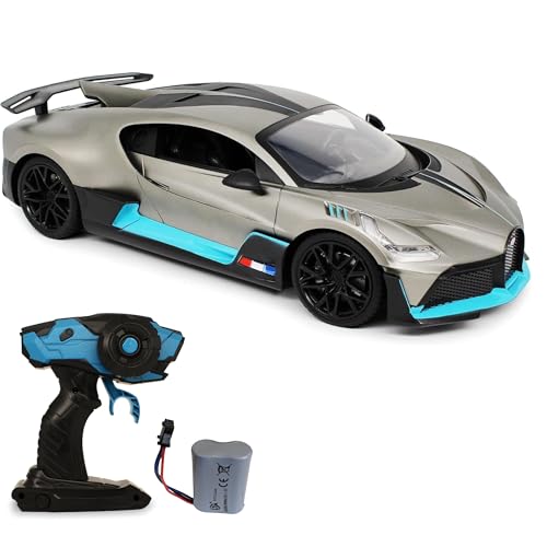 CMJ RC Cars 1:12 RC Bugatti Divo Titanium Silver - with 7.4V 900mAh Battery, 12 Km/h Speed, LED Lights, and 2.4Ghz Remote for Boys, Girls