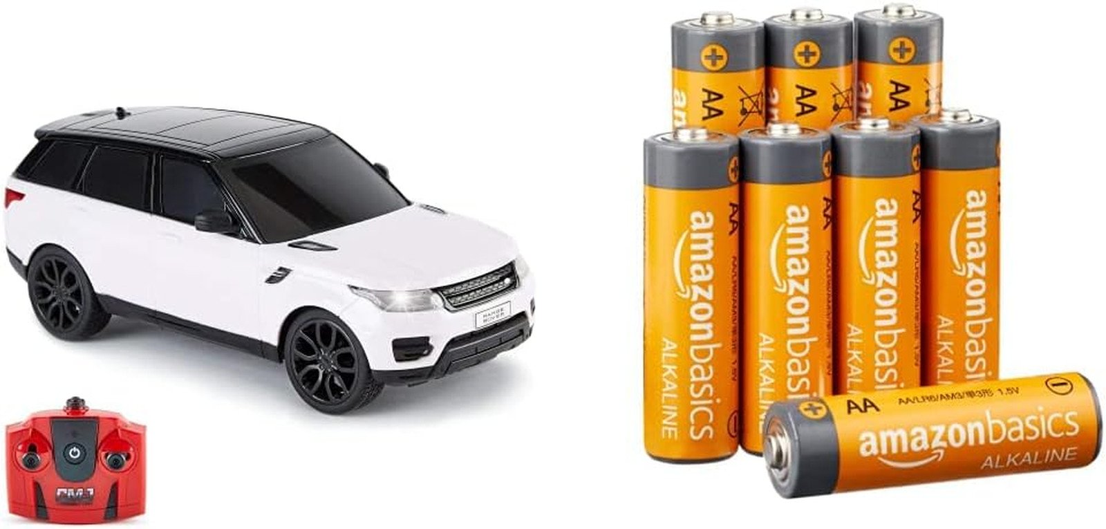 CMJ RC Cars TM Range Rover Sport Remote Control Car 1:24 scale with Working LED Lights, Radio Controlled Supercar & Amazon Basics AA 1.5 Volt Performance Alkaline Batteries - Pack of 8