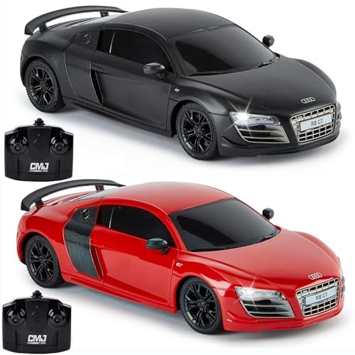 CMJ RC Cars Twin Pack: Officially Licensed Red & Black Audi R8 GT – Radio Controlled RC Car Boys Girls Toys 1:24 scale, 2.4Ghz