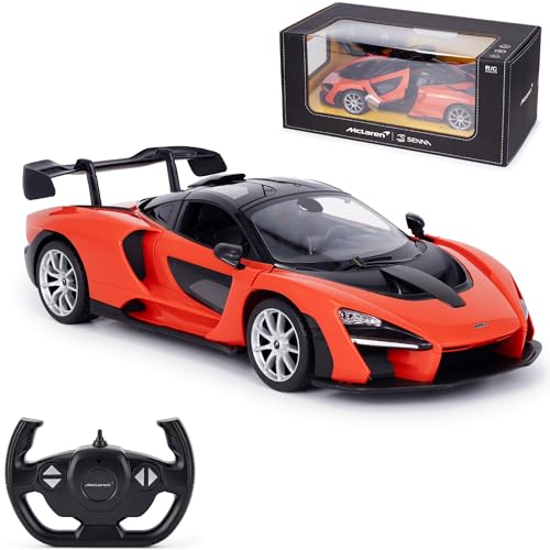 CMJ RC Cars McLaren Senna Remote Control Car 1:14 Scale – Orange, with Manual Butterfly Doors, Working Lights, and Full Suspension
