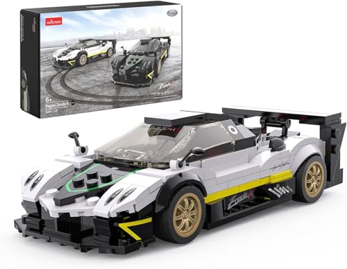 CMJ RC Cars Officially Licensed 1:28 Scale Pagani Zonda R Bricks Model Building Kit – 387 Piece Pagani Zonda R Vehicle Collectible Construction Blocks Set Gift for Kids Adults (White)