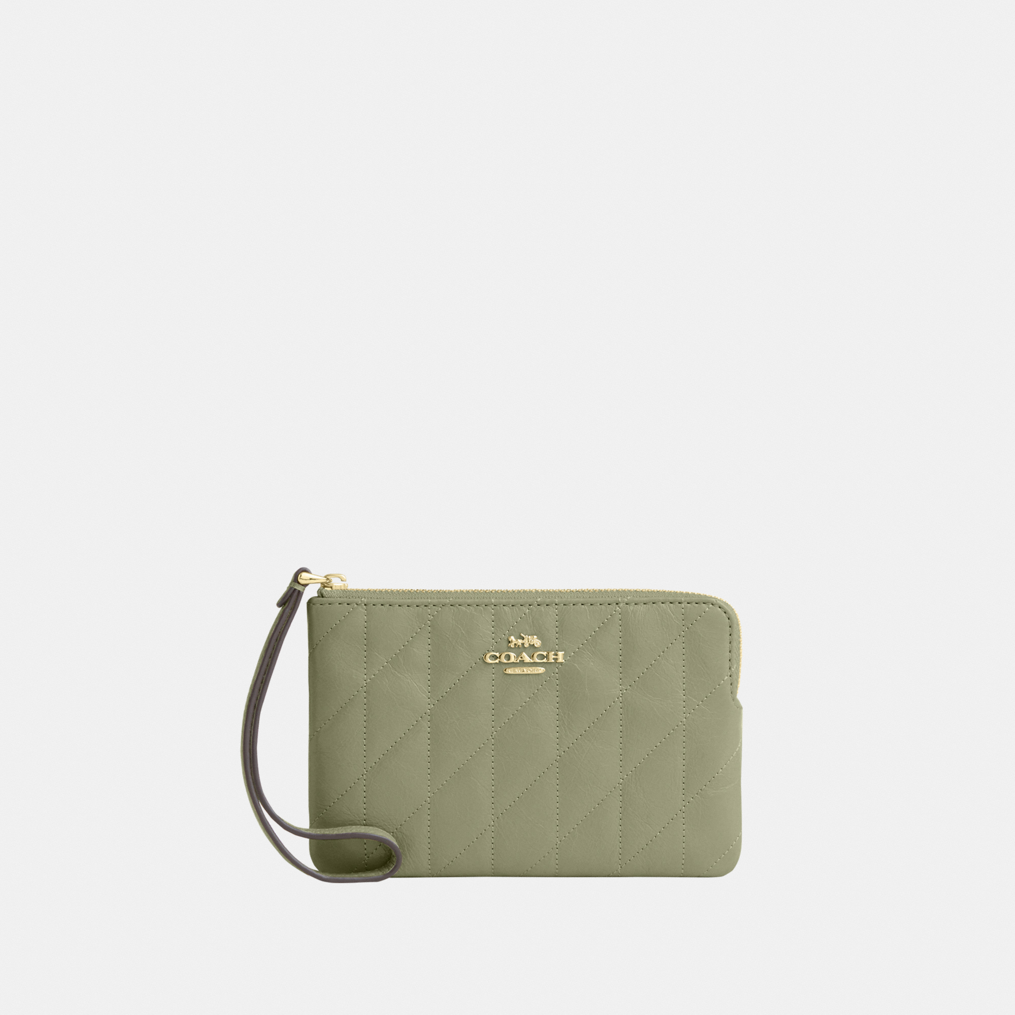 Coach Womens Corner Zip Wristlet With Quilting - Green Leather - One Size