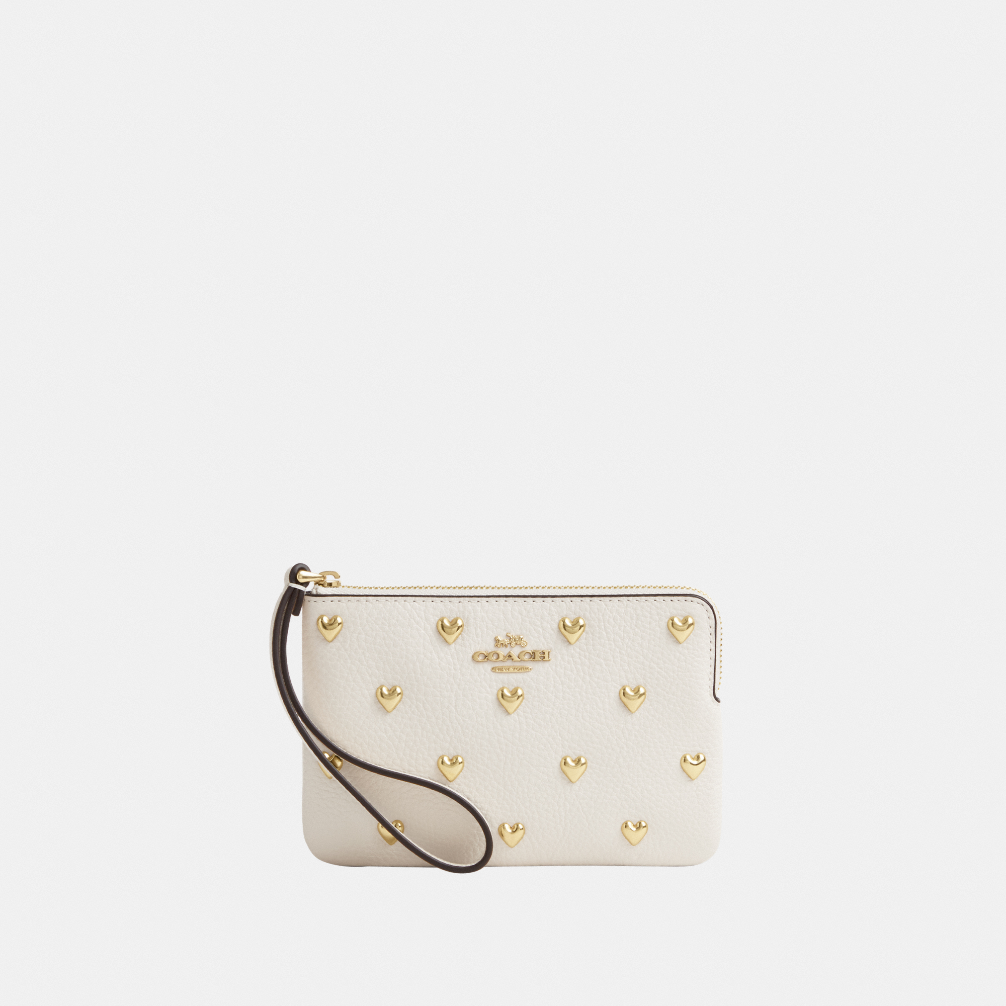 Coach Womens Corner Zip Wristlet With Heart Rivets - White Leather - One Size