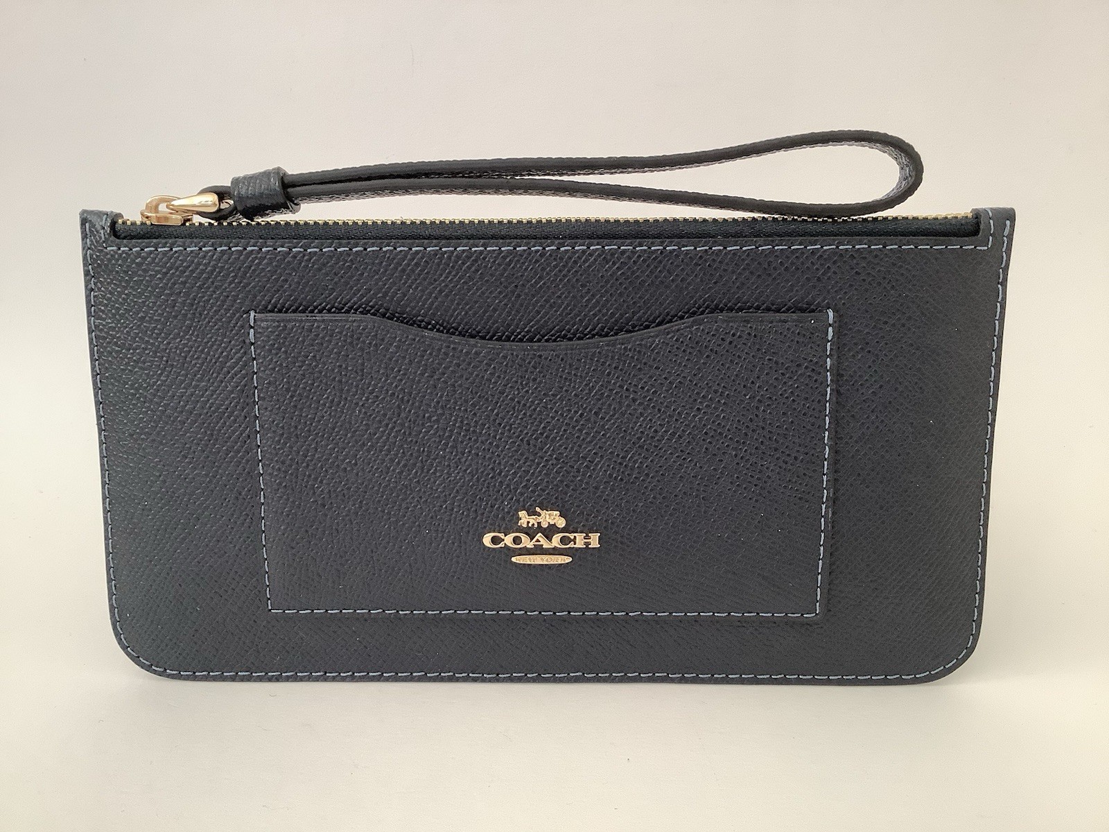 New Coach Dark Blue Crossgrain Leather Medium Zip-top Wristlet Wallet