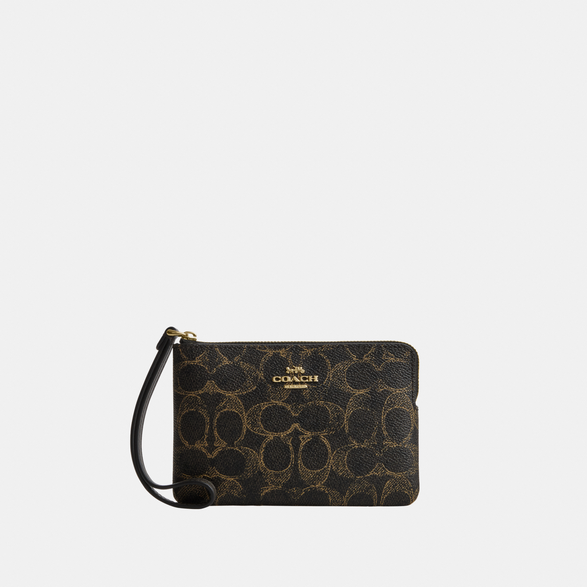 Coach Womens Corner Zip Wristlet In Loved Signature Canvas - Brown - One Size
