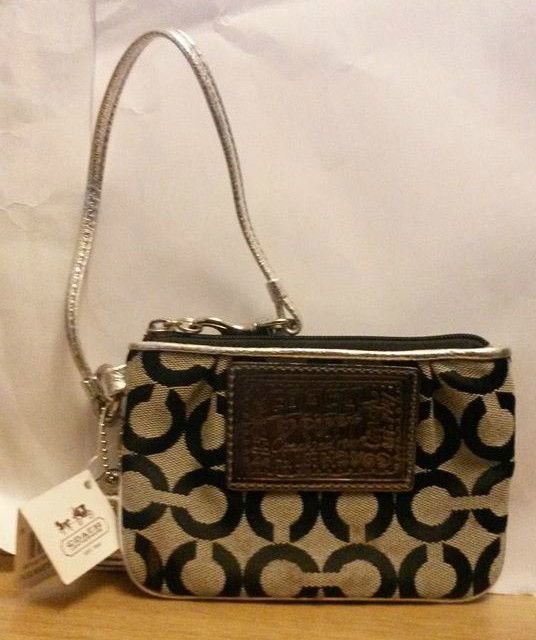100% Genuine COACH Poppy OP Art Purse 44061 SBWSV Wristlet in Silver & Black