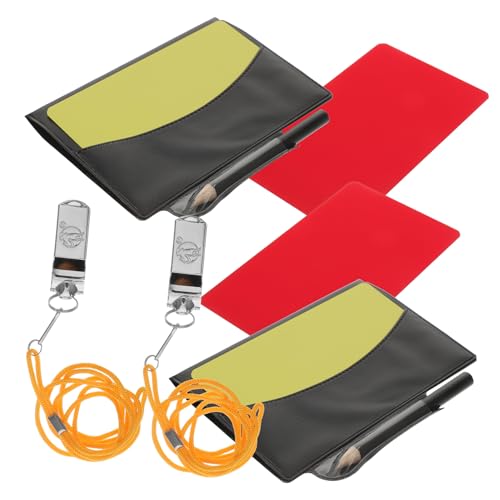 SUPVOX Multi-function Soccer Referee Cards with Red Yellow PVC Cards Metal Whistles Pencil Holder and Scoring Notebook for Football Basketball Coaching and Game Officiating Kit