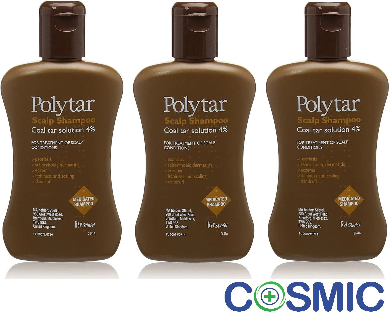 3 x POLYTAR Scalp Shampoo Coal Tar Solution 4% (150ml) **PHARMACY STOCK**