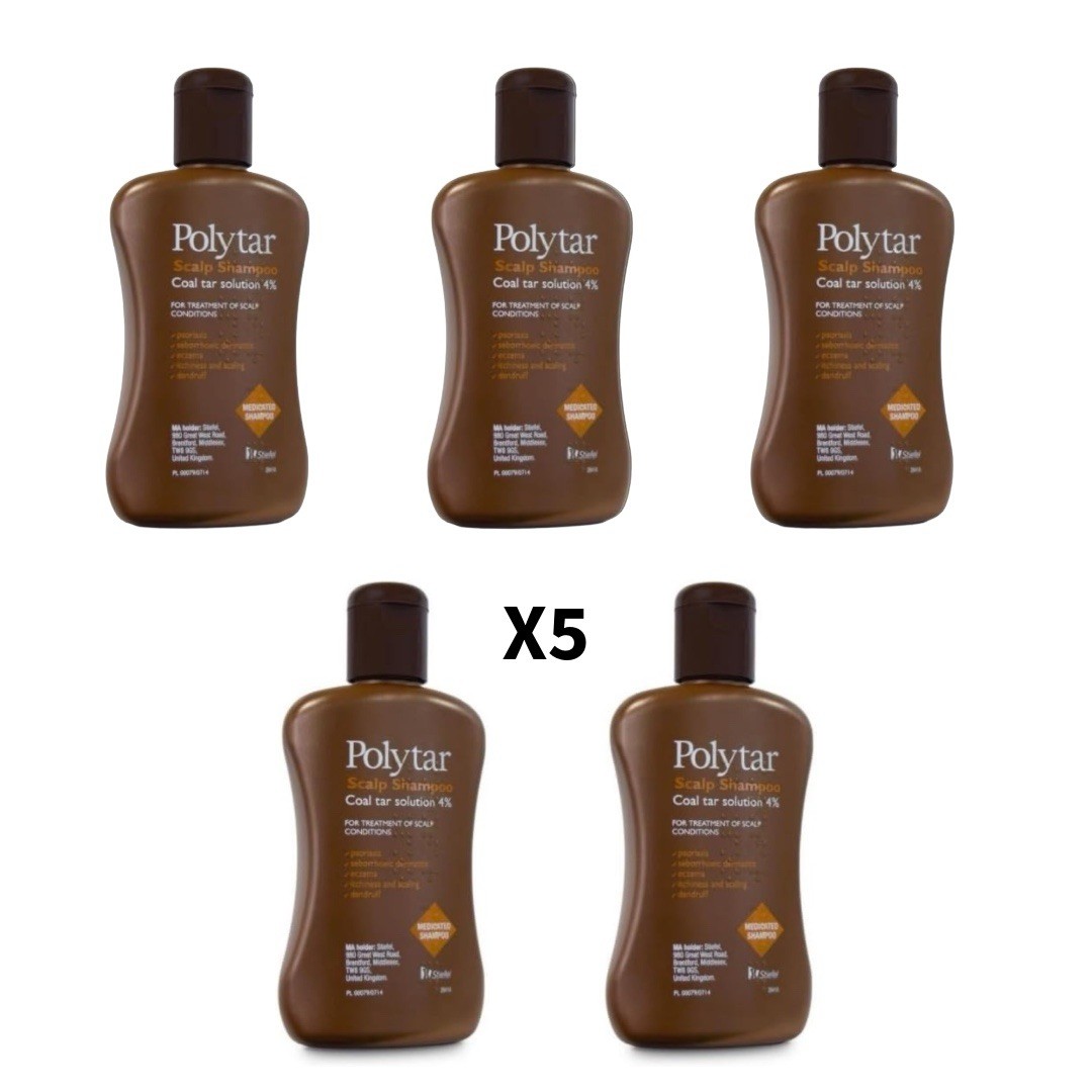 5 x POLYTAR Scalp Shampoo Coal Tar Solution 4% (150ml) **PHARMACY STOCK**