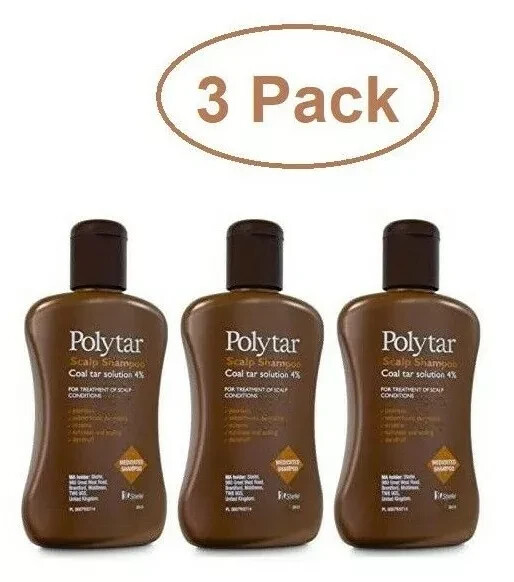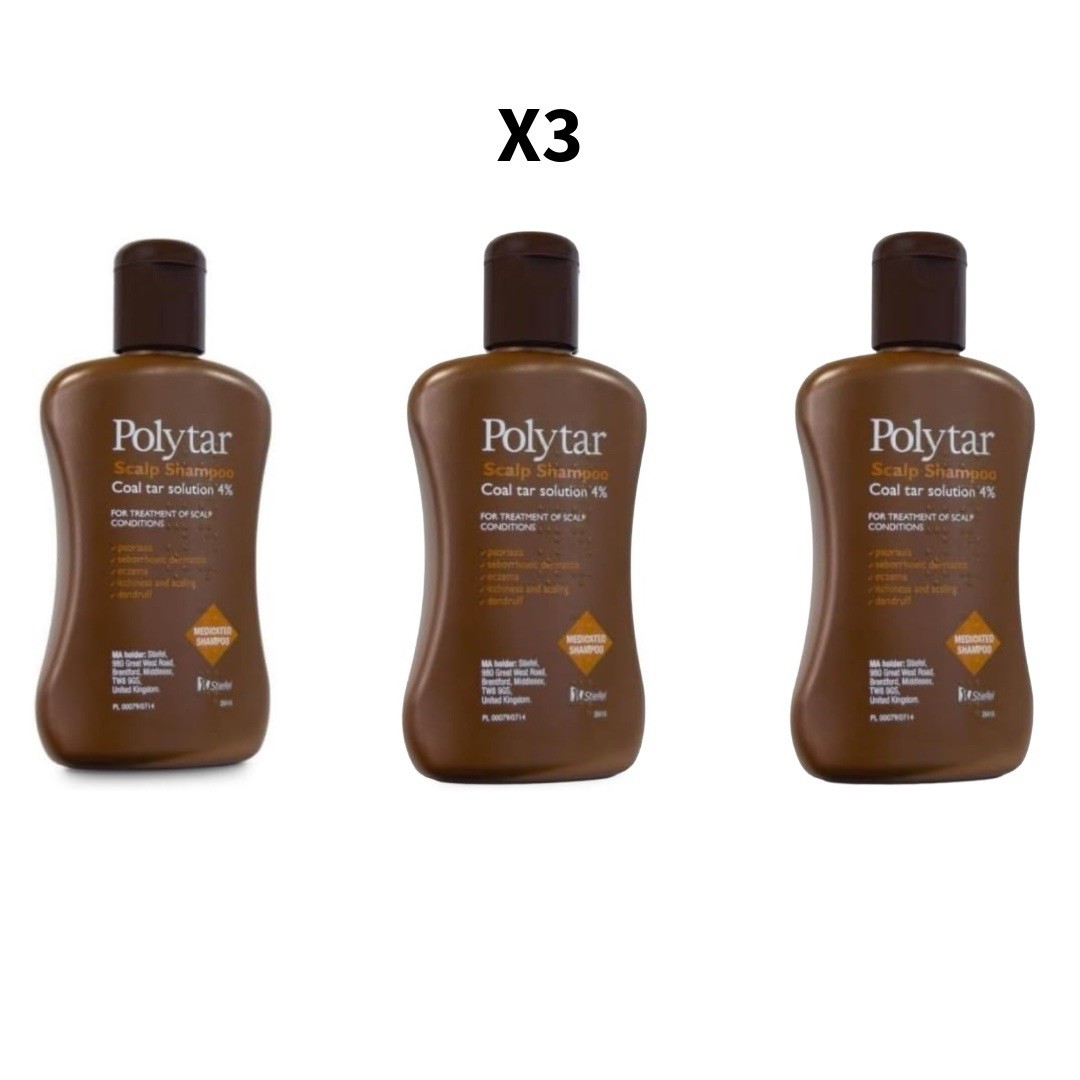 Polytar Scalp Shampoo Coal Tar Solution 4% 150ml x 3 NEW FREE & FAST UK POST!