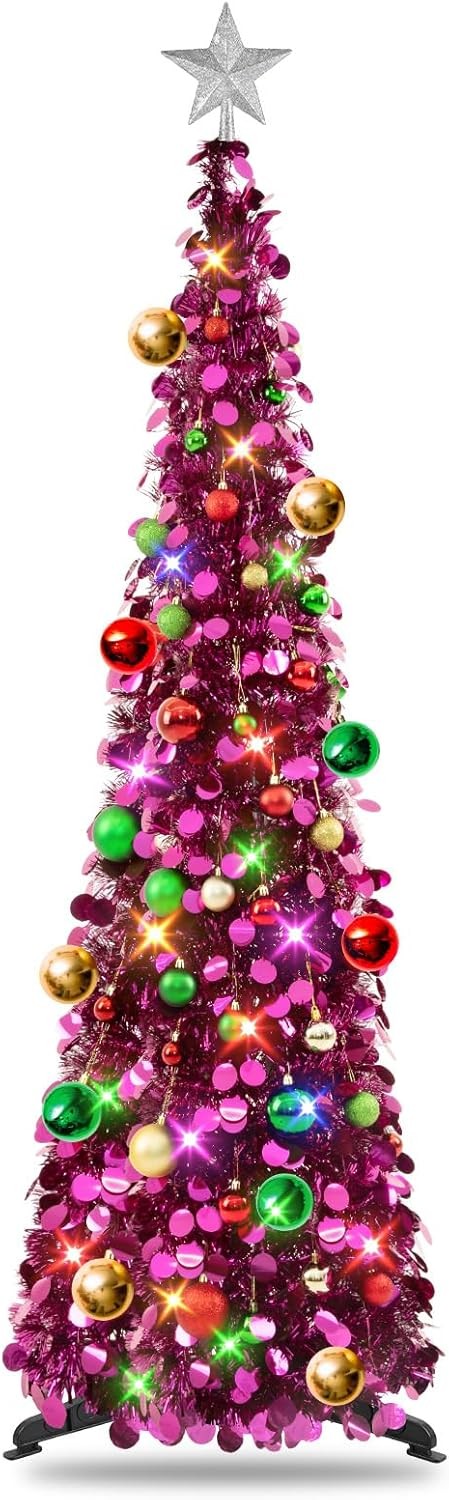 MACTING 5ft Pop up Christmas Tinsel Tree with Stand Easy-Assembly Tinsel Coasta