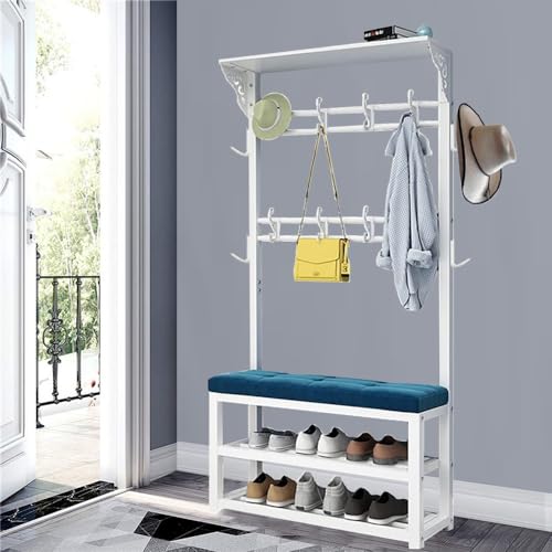 DJXLMN Shoe Rack Coat Hanger Stand with Storage Bench and Hooks for Hallway Living Room Bedroom Organization