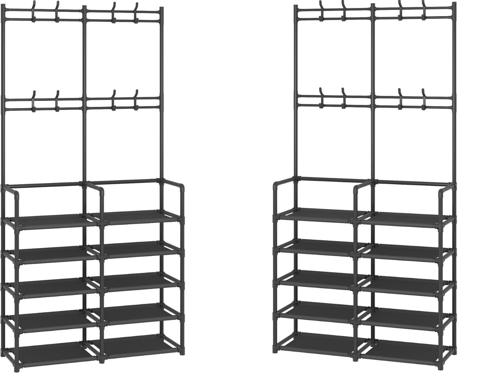 Clothes Rack with Shoe Storage - Sturdy Metal Coat Hanger Stand Hooks | Multifunctional entry for shoe fabric, compact household use, space saving design effective organization