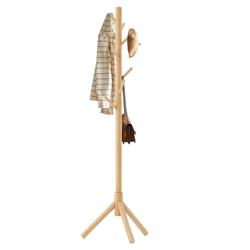 Aibiju Coat Rack Free Standing, Coat Tree With 8 Hooks and 3 Height Options, Wood Coat Hanger Stand, Suit for Adults,Kids, Home/Entryway/Hallway (Natural Wood),YD-1004
