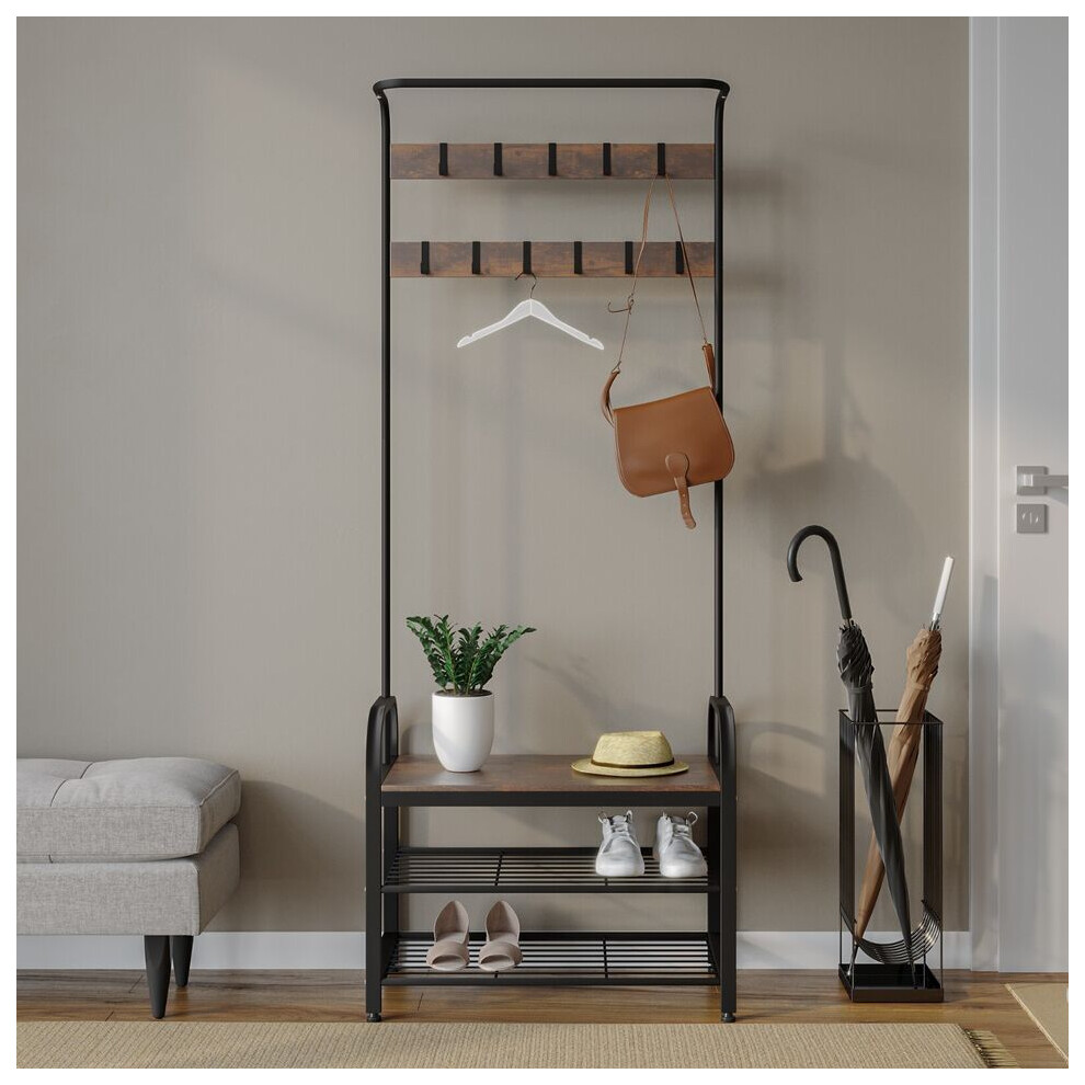 (Black & Rustic Oak) Hallway Coat Hanger Stand & Shoe Bench Storage